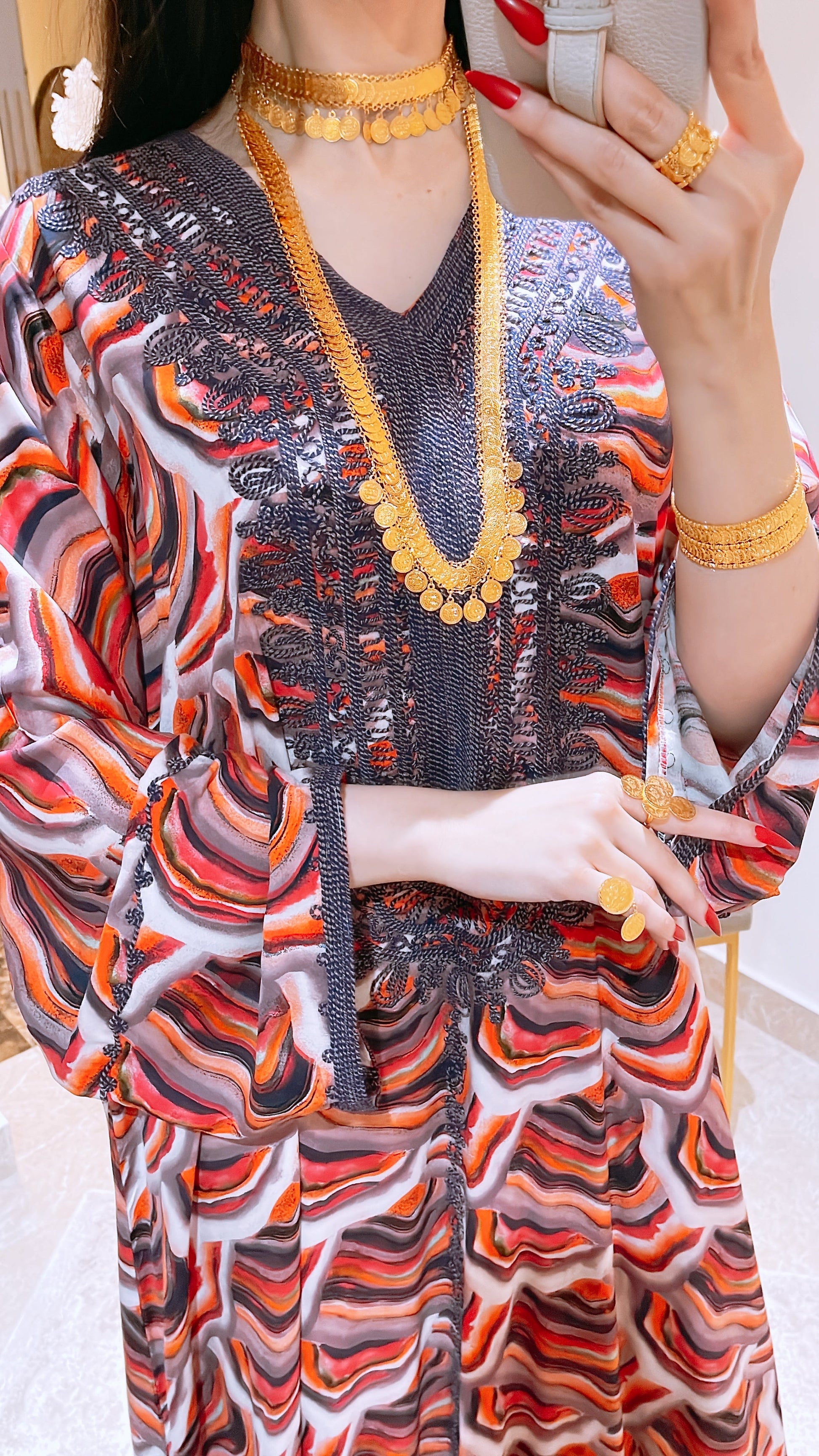 تتميز هذه القطعة الأنيقة بدرجات اللون الأحمر الجريئة، وتضفي عليها تطريزات نابضة بالحياة تباينًا مذهلاً. كما تضيف فتحة العنق المسننة لمسة من الأناقة، مما يجعلها مناسبة للنزهات غير الرسمية والمناسبات الرسمية. تتميز هذه القطعة بأنها خفيفة الوزن وخفيفة الوزن، وتمزج بين العاطفة وسهولة الارتداء اليومية، مما يجعلها قطعة جريئة أينما ذهبت.