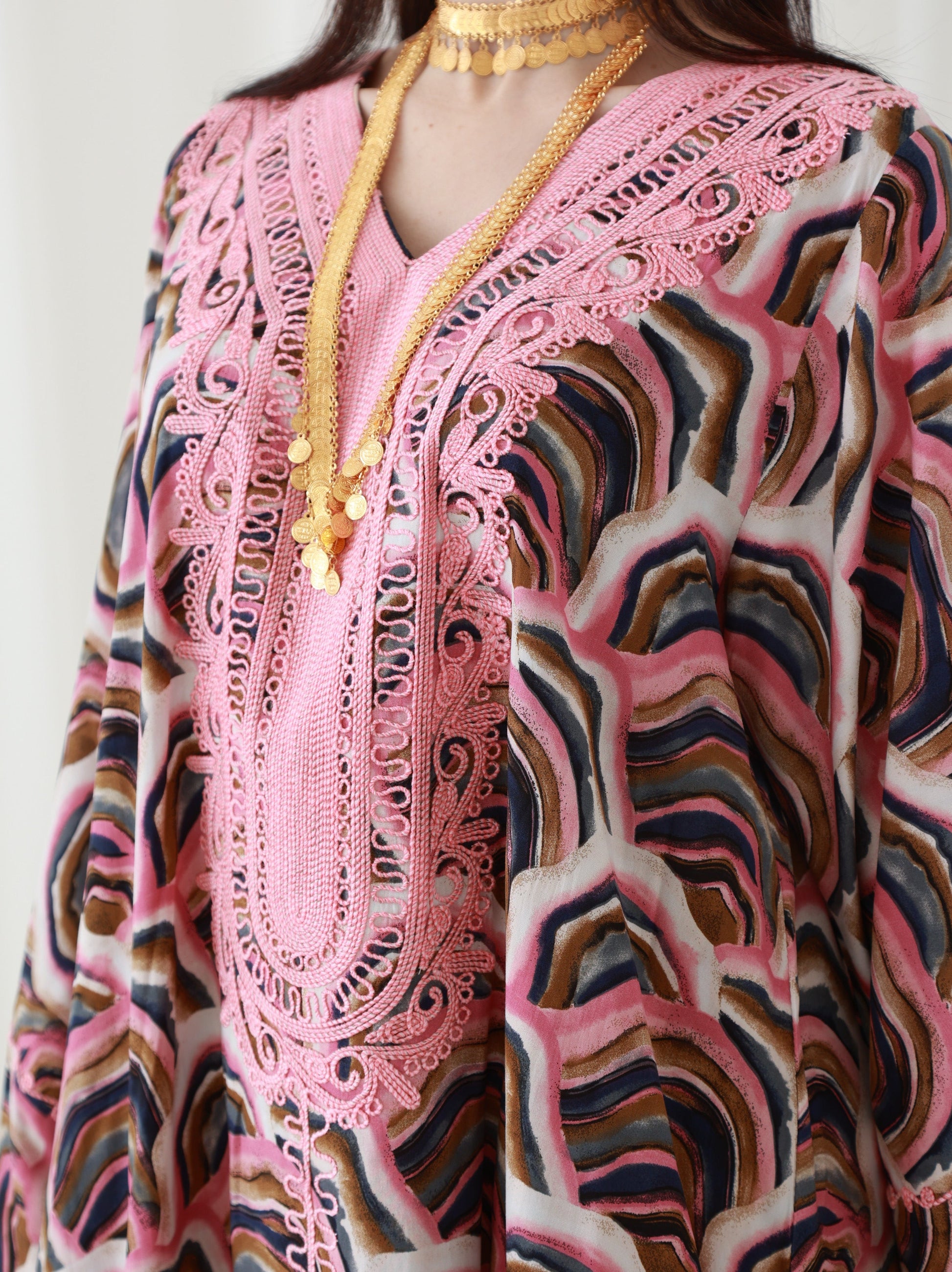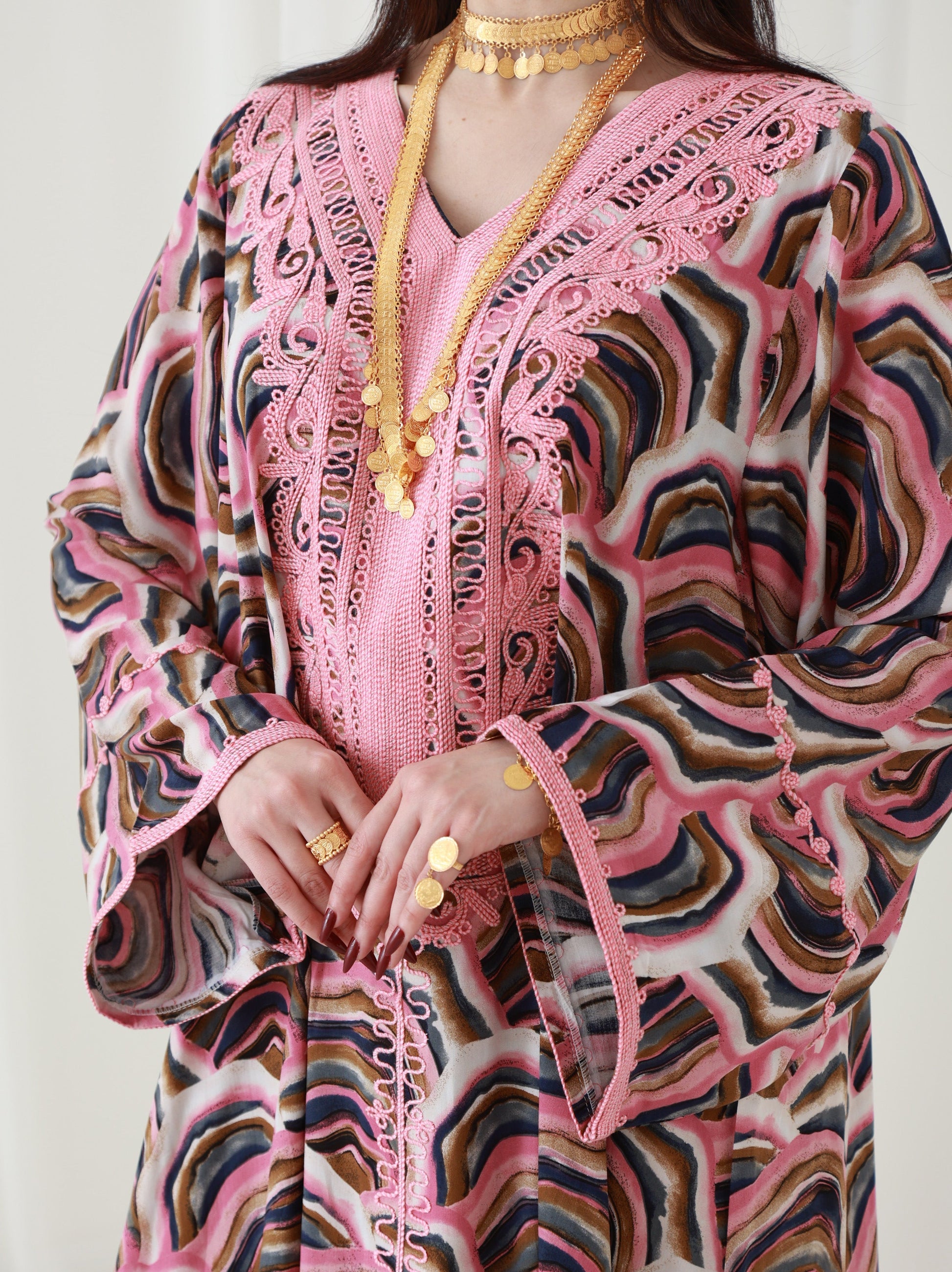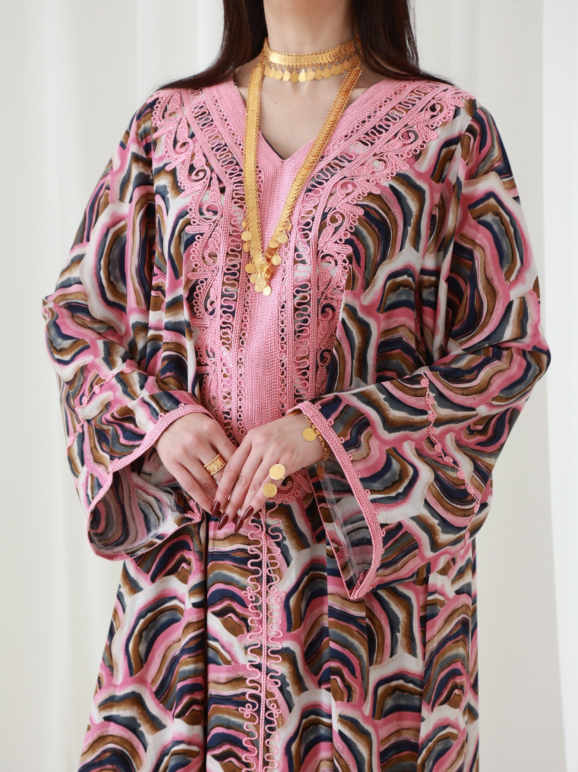 هذا الفستان المذهل، الذي يتميز بتطريز رائع على الياقة والأكمام، سيضفي لمسة من الأناقة على إطلالتك. مصنوع من قماش حريري يسمح بمرور الهواء ويوفر الراحة طوال اليوم والأناقة التي لا تتطلب مجهودًا. إنه مثالي للإطلالات الرسمية وغير الرسمية نظرًا للمسة الراقية التي يوفرها التطريز الجميل. يبلغ طول الفستان 58 بوصة وعرضه 23 بوصة عند الصدر، بتصميم بمقاس واحد يناسب الجميع. يتم تقديم تعديلات مجانية لضمان المقاس المثالي. القماش خفيف الوزن، مما يجعله مثاليًا للبقاء منتعشًا في الطقس الحار. تجتمع جاذبيته الكلاسيكية وراحته في قطعة واحدة متعددة الأغراض.