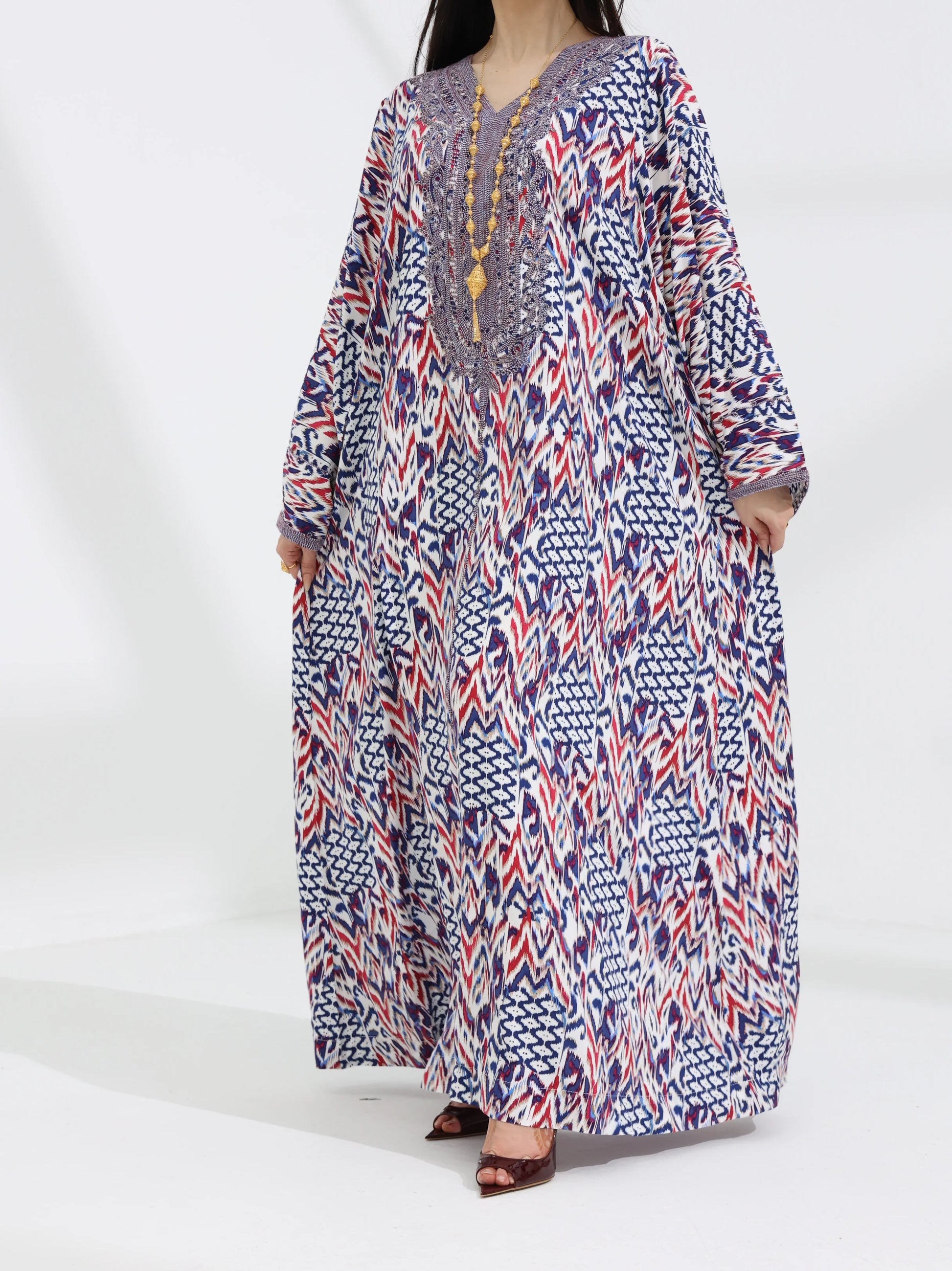 الوصف: يقدم فستان Urban Nebula تفاعلًا مذهلاً بين الحداثة والأناقة. تعمل قاعدته البيضاء كلوحة قماشية لأنماط هندسية جريئة باللون الأزرق البحري والأحمر تضفي لمسة حضرية نابضة بالحياة. يتميز هذا الفستان بتطريز لافندر وفتحة رقبة على شكل حرف V، ويجمع بسلاسة بين الأسلوب المعاصر ولمسة من الرقي. مثالي للتعبير عن نفسك في المناسبات غير الرسمية وشبه الرسمية، ويمكن تنسيقه بسهولة مع الأحذية المسطحة الأنيقة والكعب العالي.