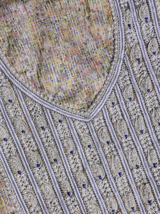 Embroidered Blue and Yellow Patterned Kaftan