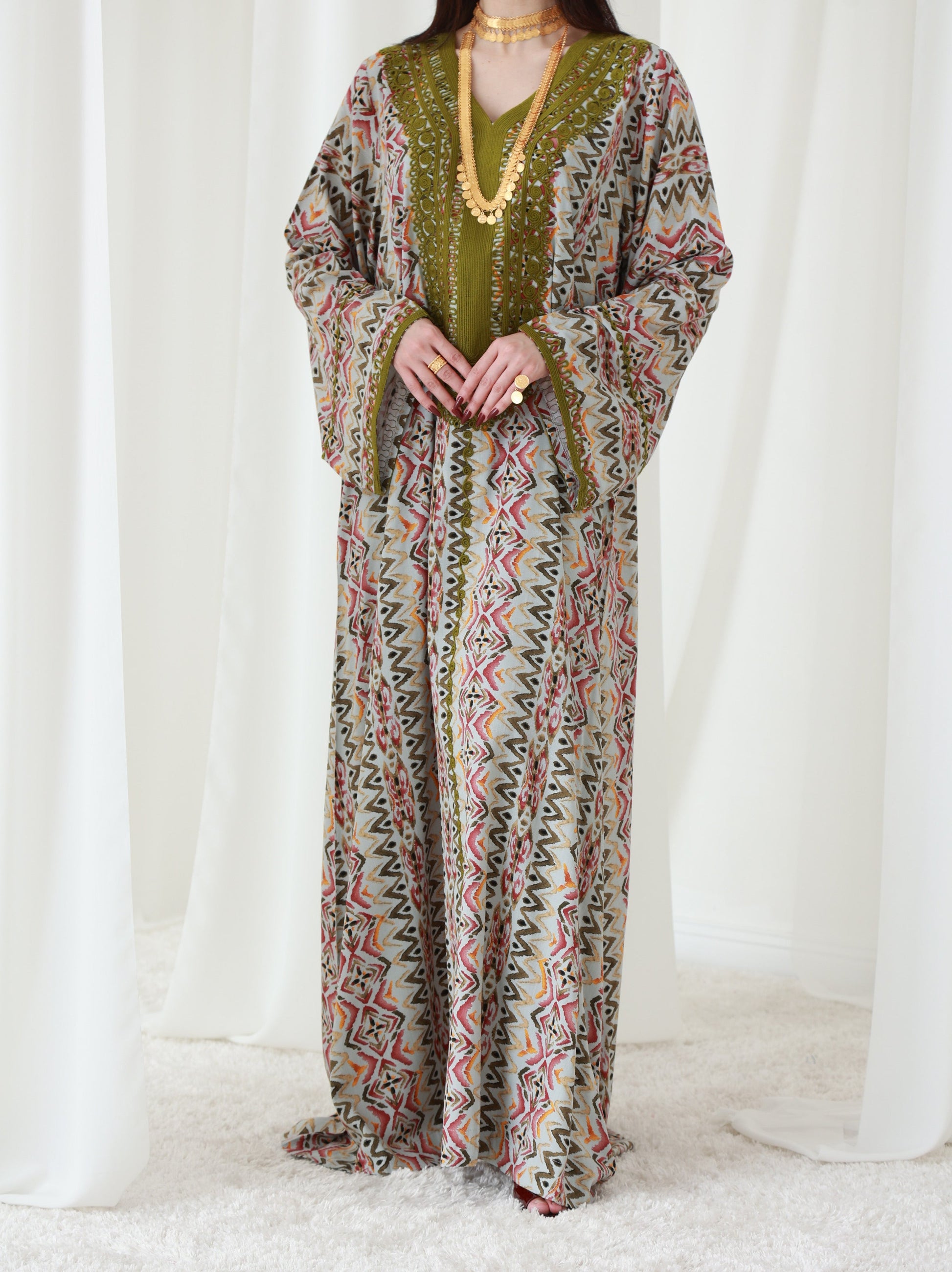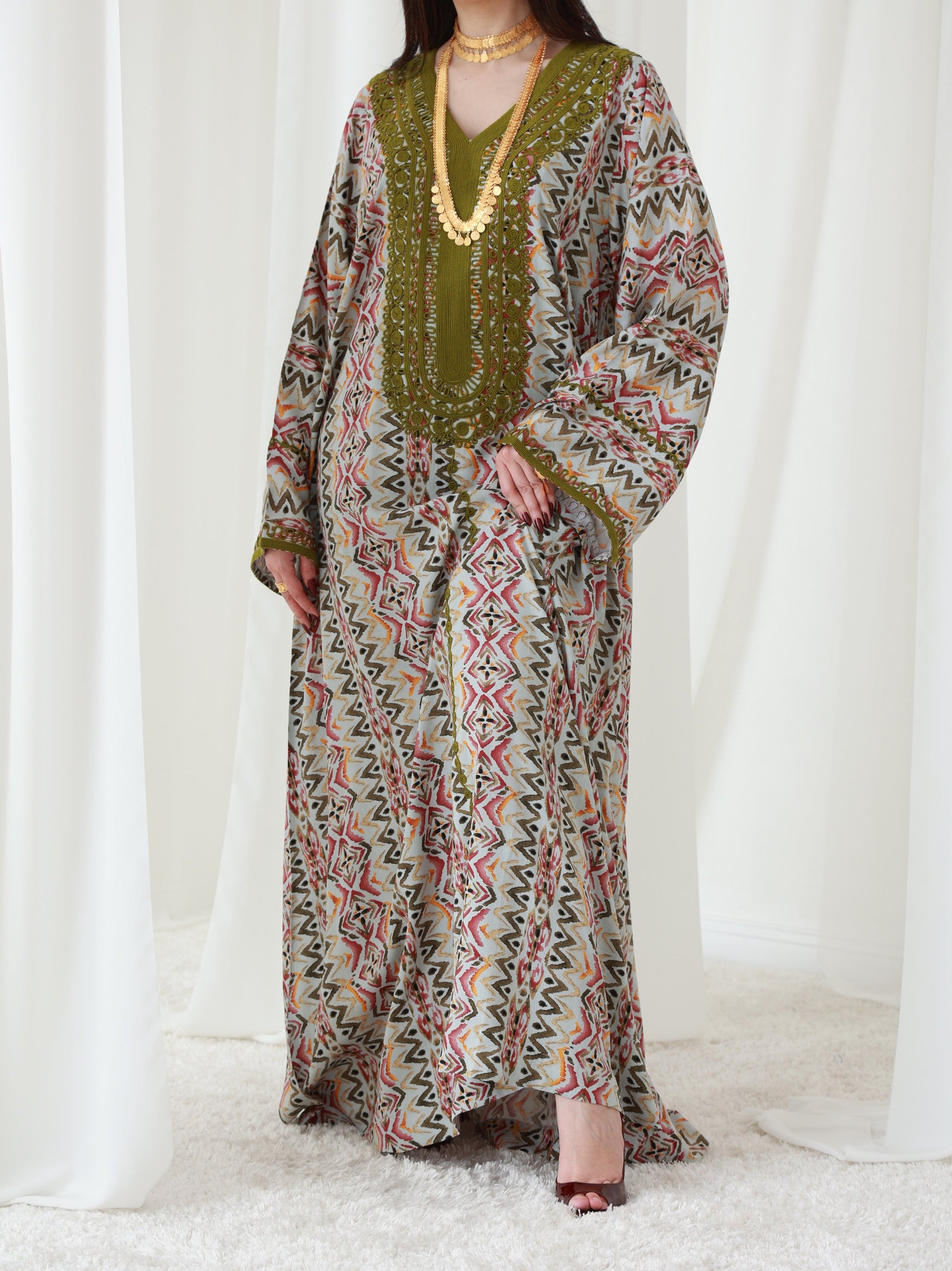 Elevate your wardrobe with this stunning dress in Mocha Sunrise, featuring exquisite embroidery adorning the collar and sleeves. Crafted from breathable and silky fabric, it offers effortless style and all-day comfort. The refined touch of the intricate embroidery makes it perfect for both formal and casual occasions. With a one-size-fits-all design, measuring 58 inches in length and 23 inches at the chest, free alterations are available to ensure a flawless fit. The lightweight and breezy fabric is ideal for staying cool in hot weather. A timeless piece that beautifully blends classic charm with modern versatility.