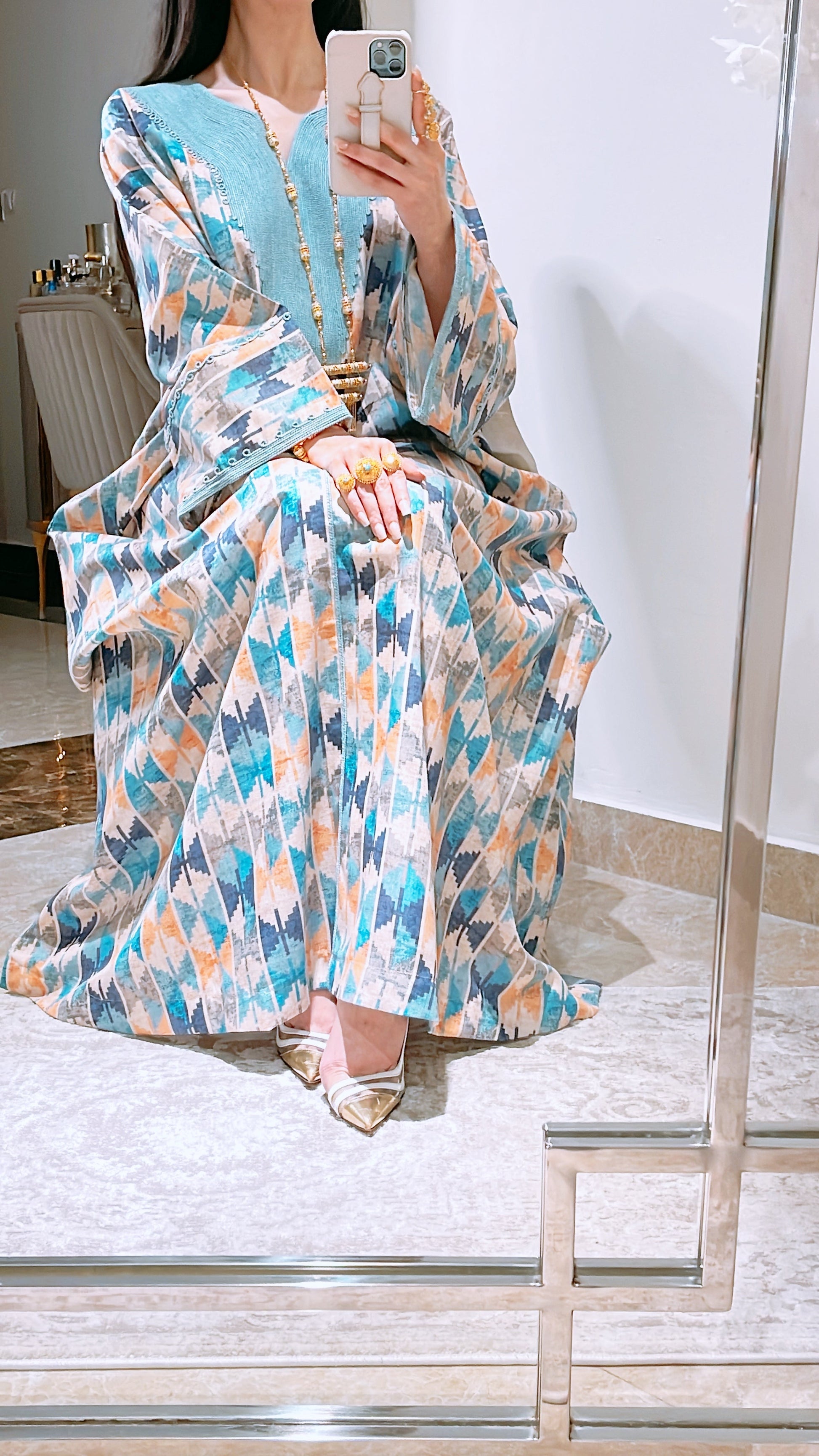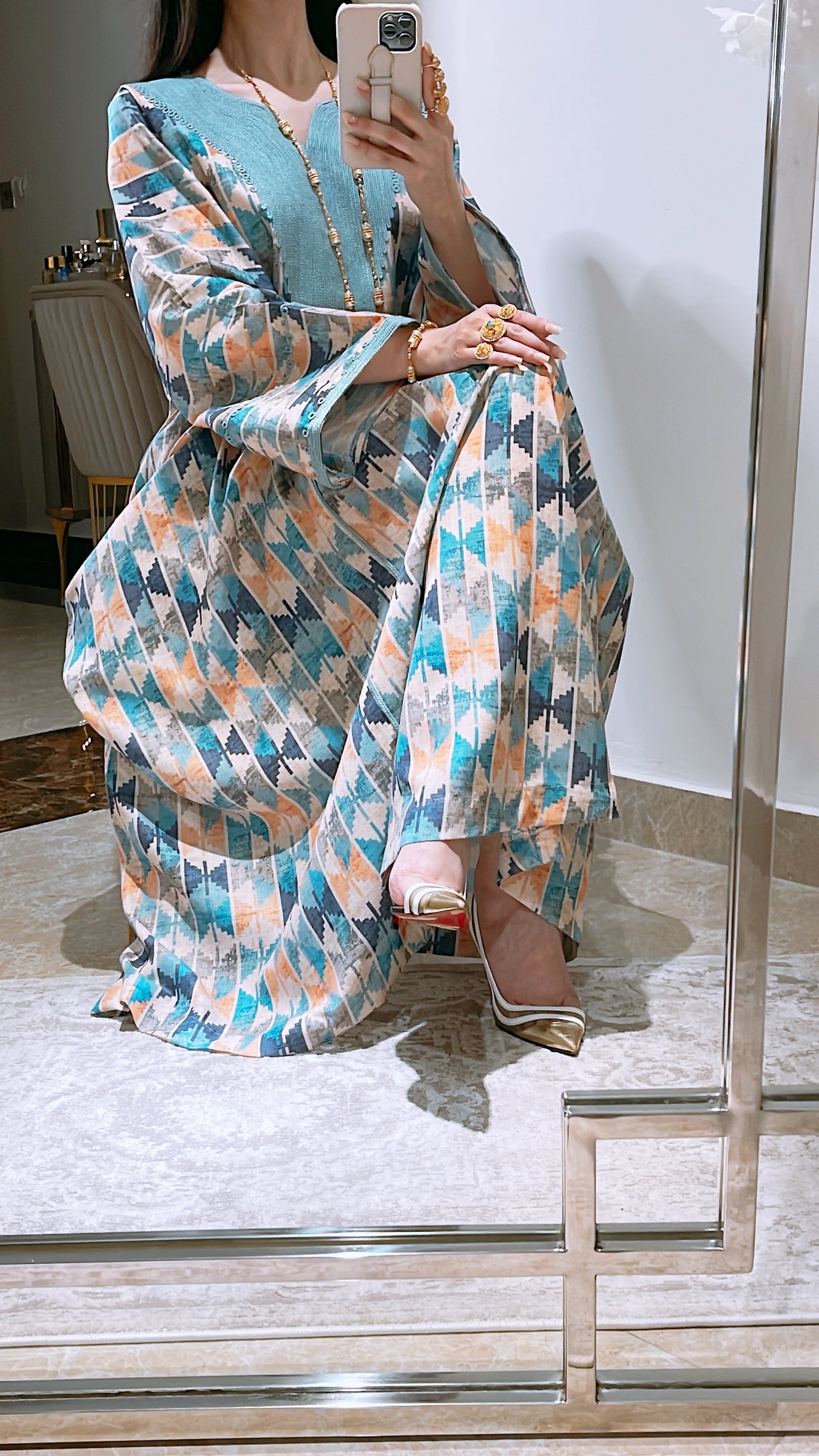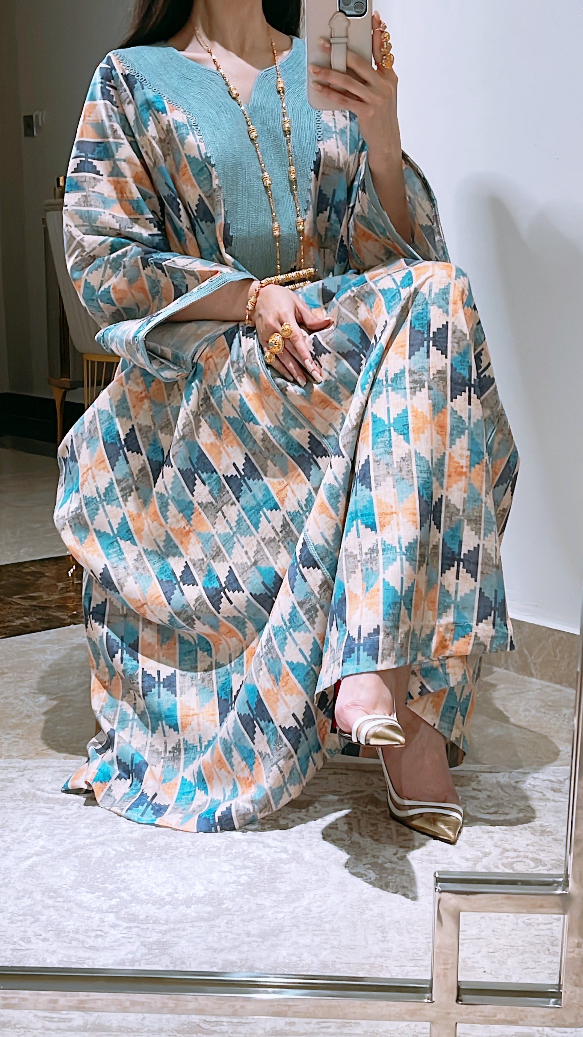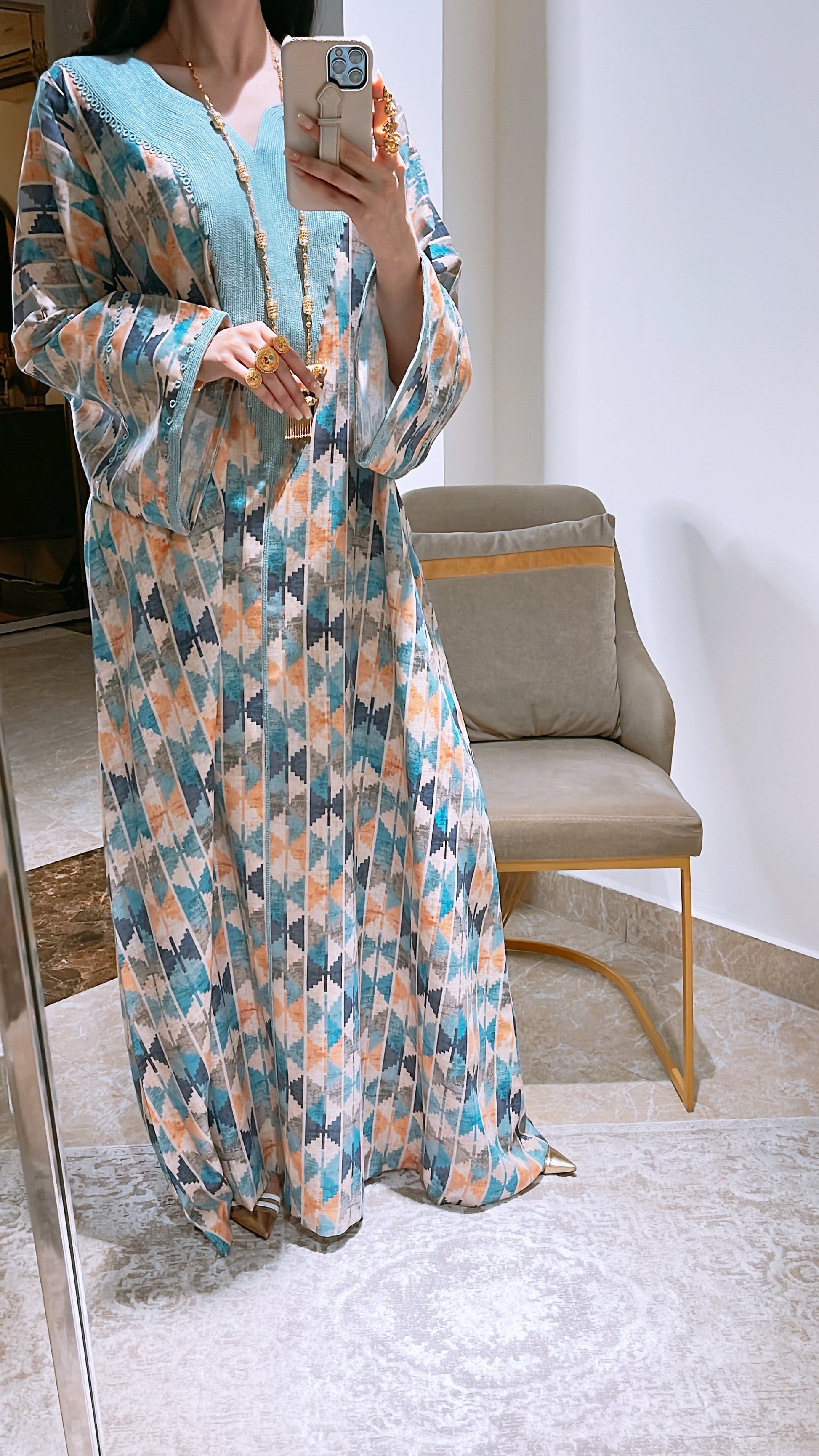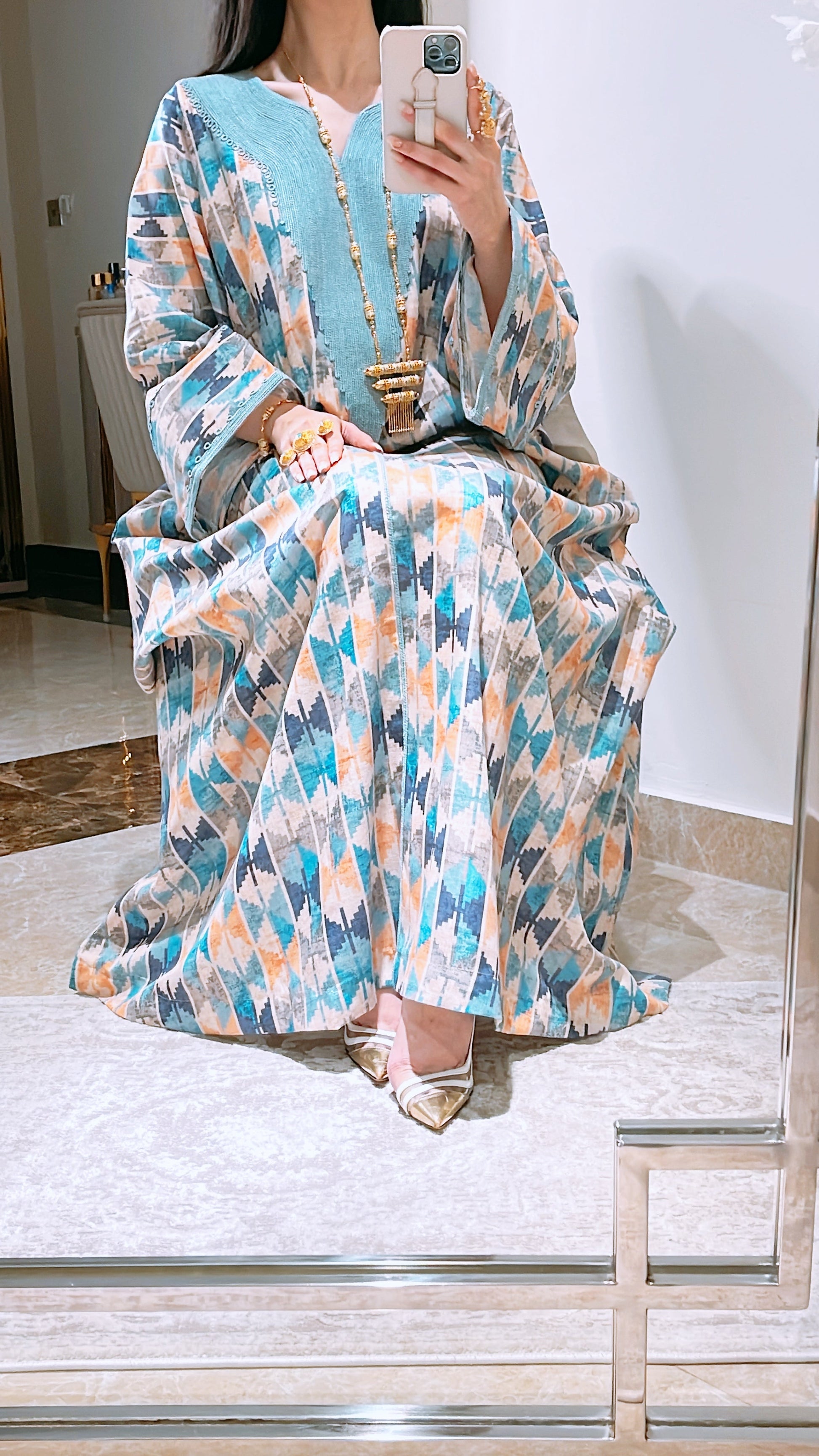 Description: Skyline Prism is a delightful blend of modern design and soft elegance. The crisp white base is adorned with a dynamic arrangement of navy, baby blue, orange, and grey triangular patterns, creating a playful yet balanced aesthetic. Baby blue embroidery accents the notched neckline and sleeves, adding a subtle touch of refinement. Ideal for casual outings or laid-back gatherings, this dress combines vibrant geometric motifs with understated details. The breathable cotton fabric ensures comfort, making Skyline Prism a versatile and stylish choice for your wardrobe.