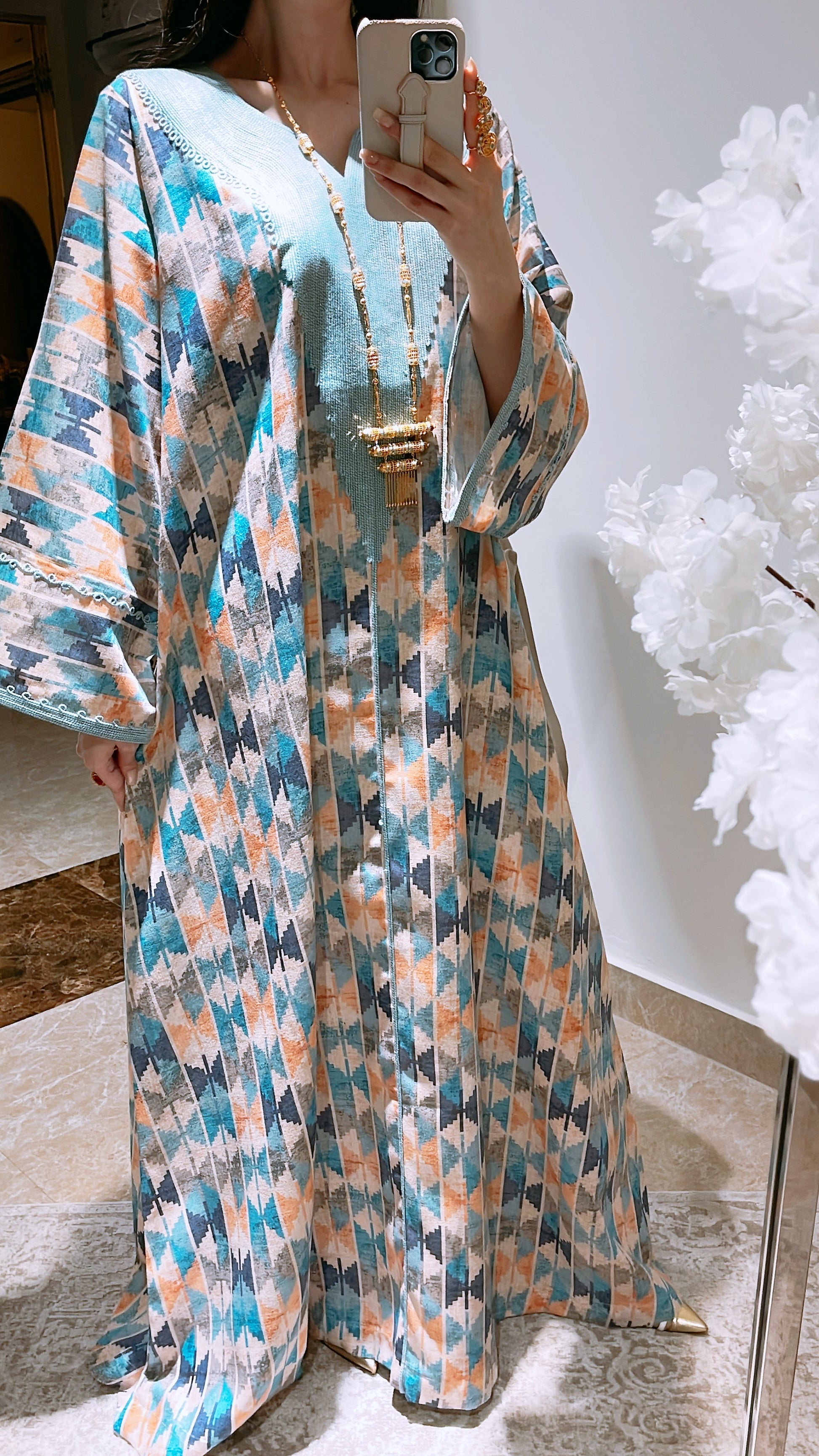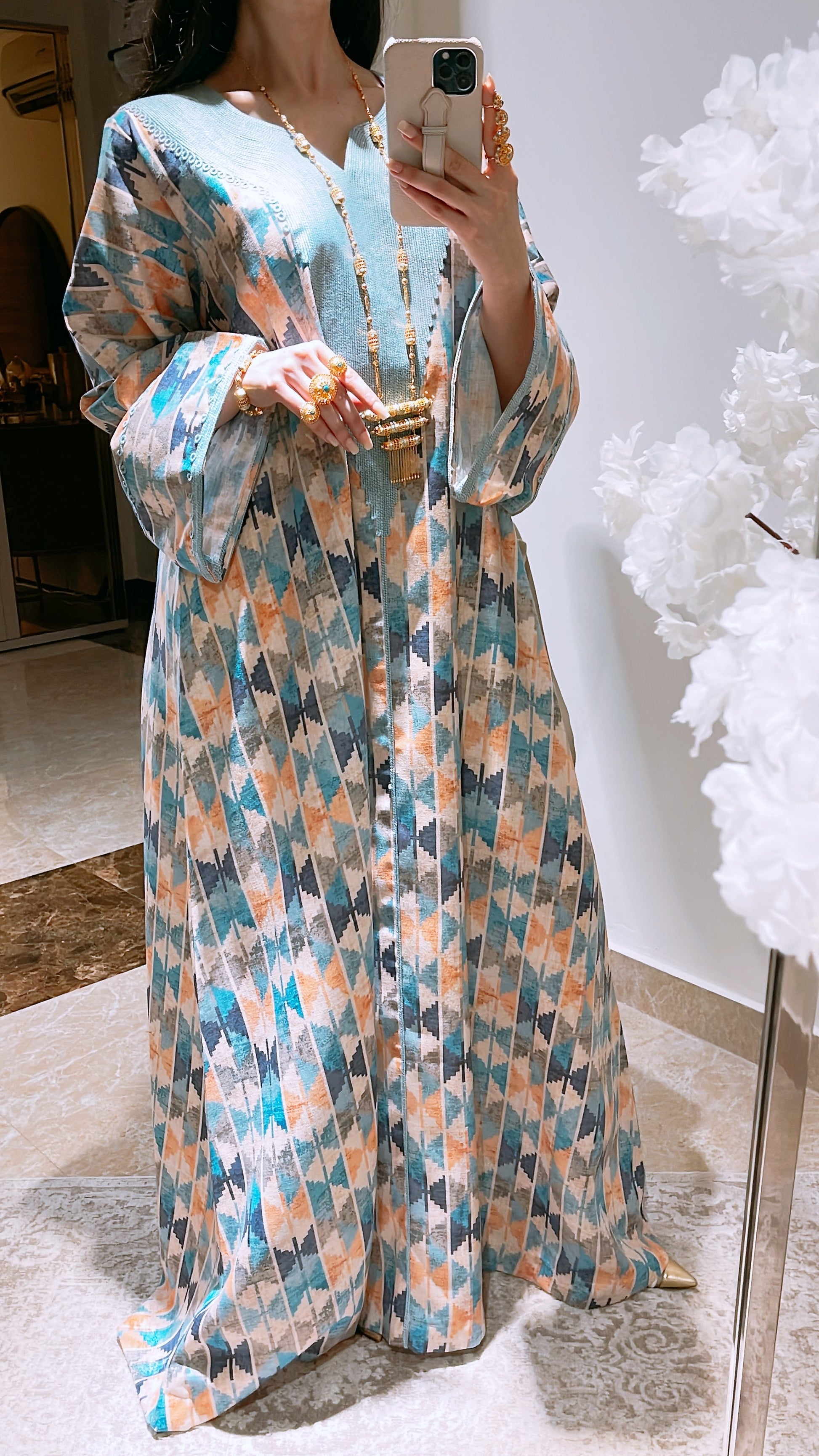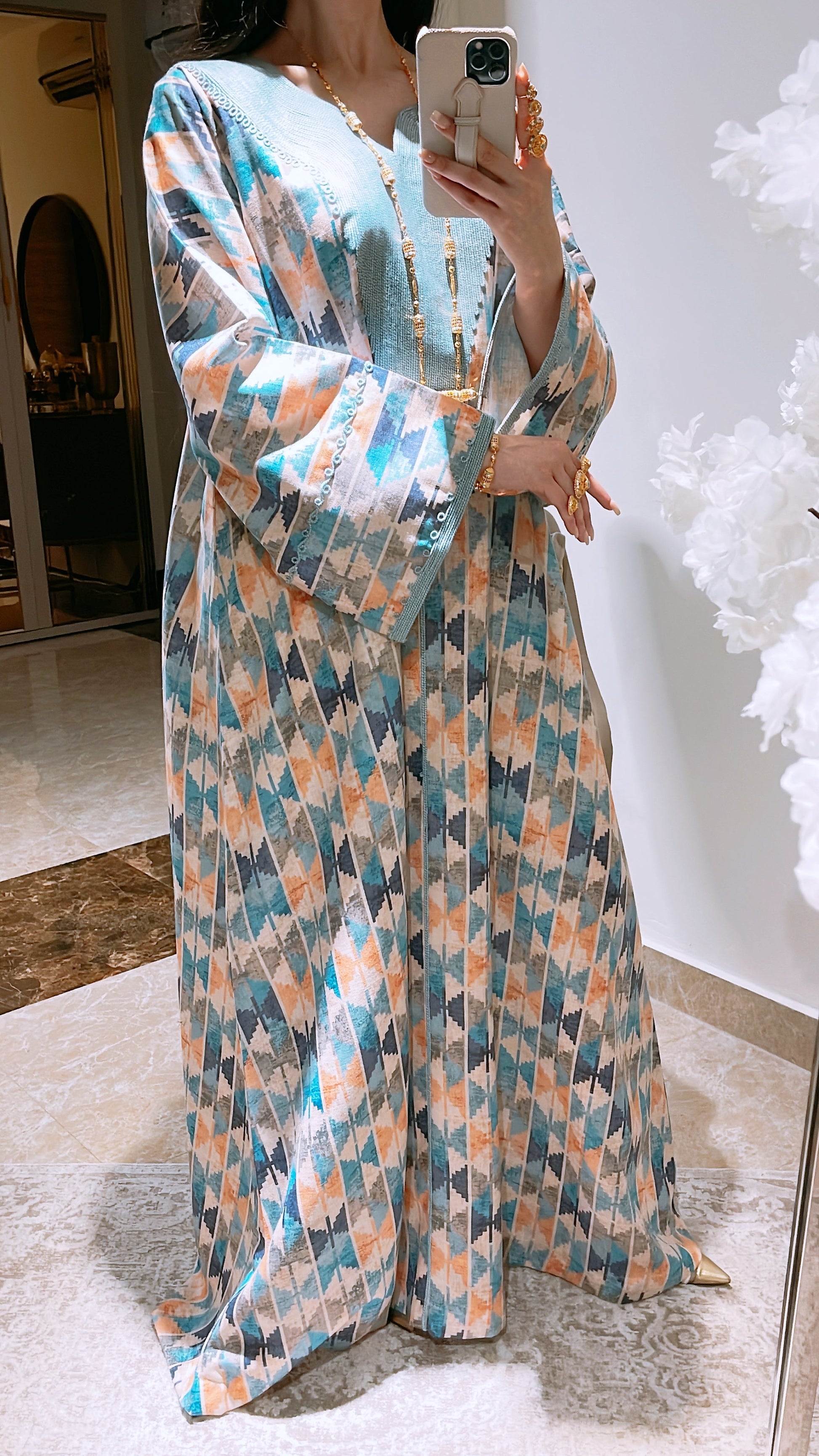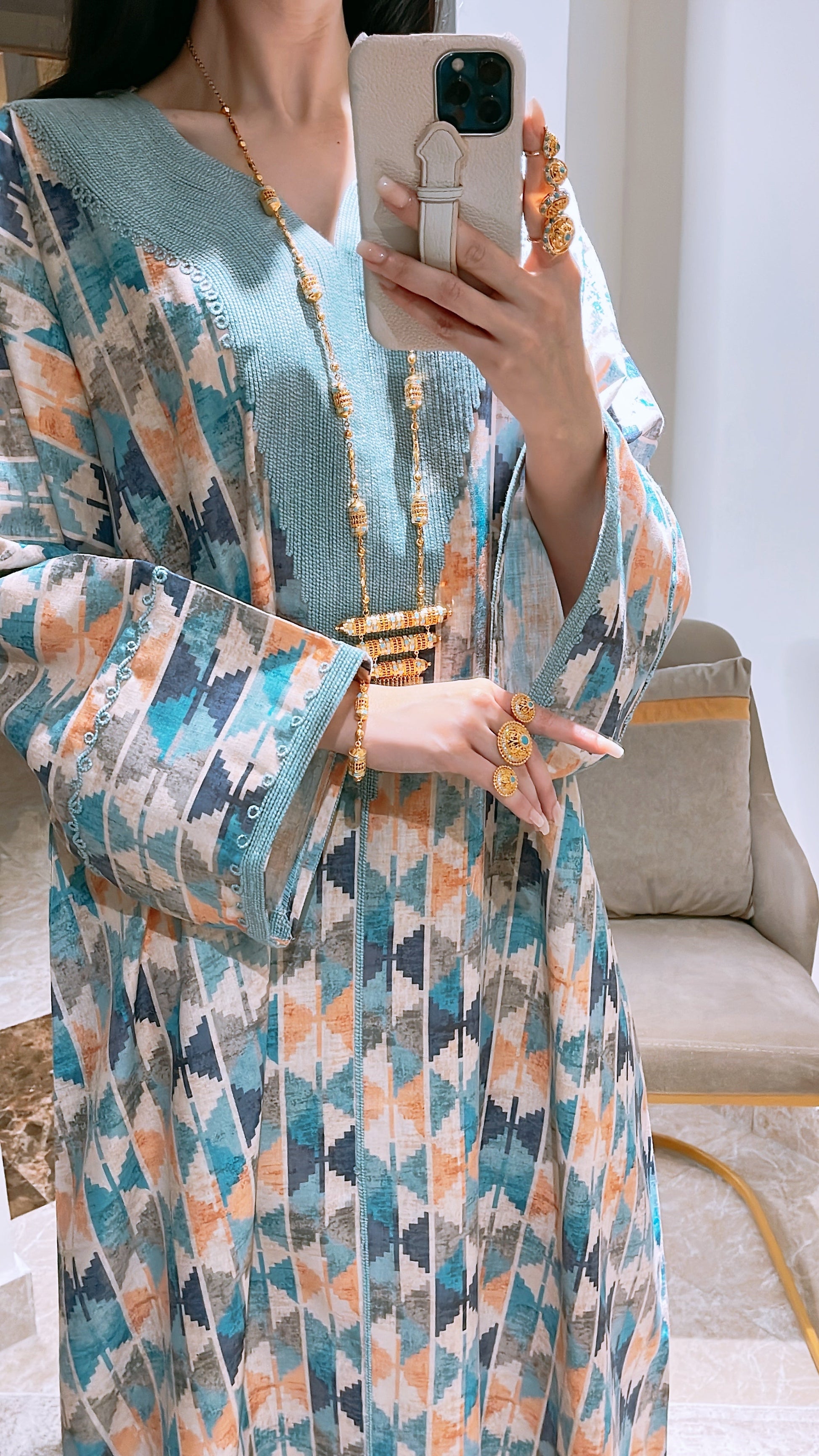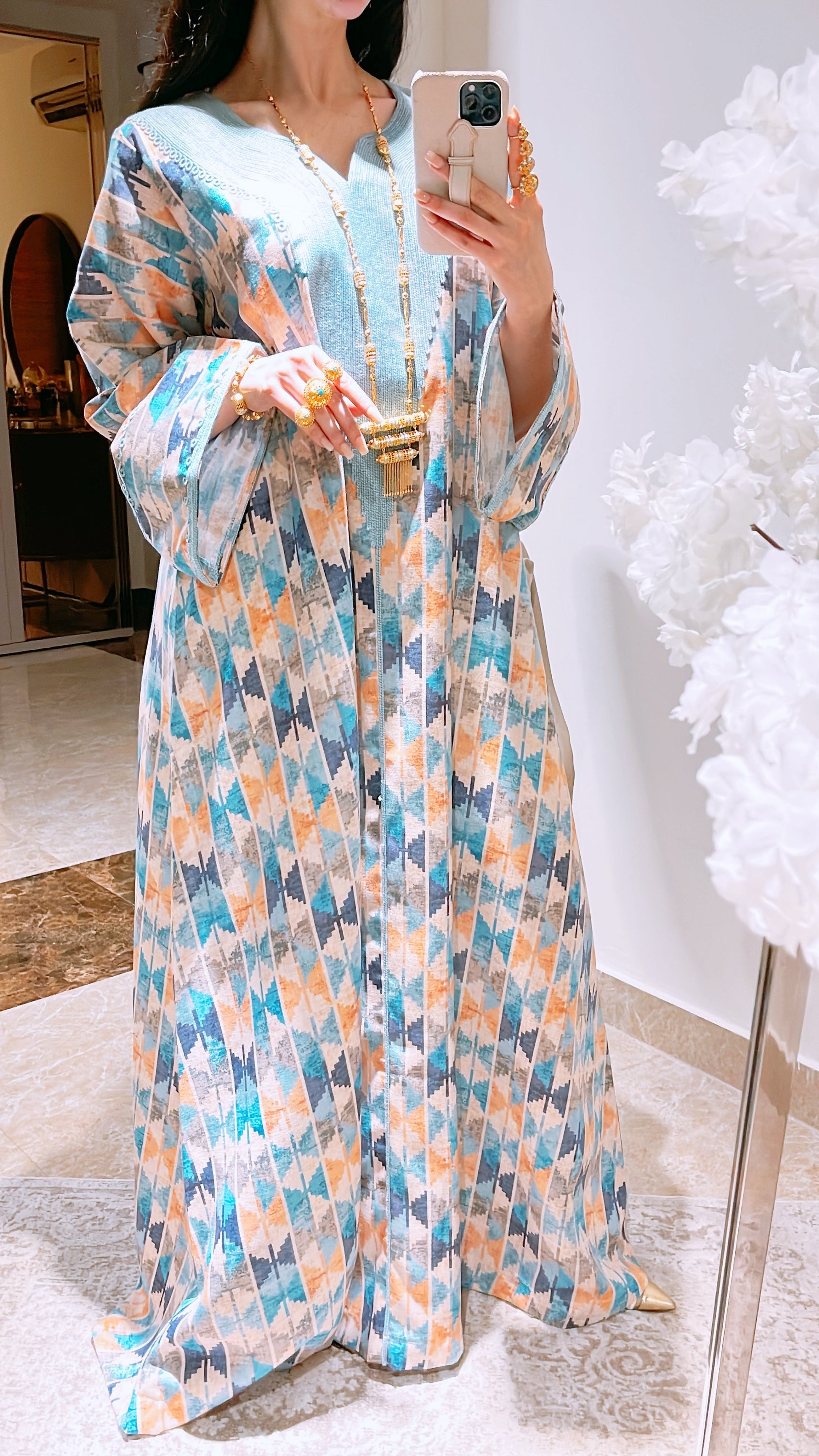 Description: Skyline Prism is a delightful blend of modern design and soft elegance. The crisp white base is adorned with a dynamic arrangement of navy, baby blue, orange, and grey triangular patterns, creating a playful yet balanced aesthetic. Baby blue embroidery accents the notched neckline and sleeves, adding a subtle touch of refinement. Ideal for casual outings or laid-back gatherings, this dress combines vibrant geometric motifs with understated details. The breathable cotton fabric ensures comfort, making Skyline Prism a versatile and stylish choice for your wardrobe.